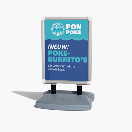 Voor slechte weersomstandigheden raden we onze stoepborden met watertank aan, omdat deze het meest stabiel zijn. Ze zijn speciaal ontworpen om slechte omstandigheden te weerstaan en kunnen worden gevuld met zand of water. Ze zijn zelfs bestand tegen harde wind (tot 90 km/u), waardoor ze betrouwbaar en duurzaam zijn.
