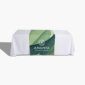 Onze tafellopers zijn gemaakt van stevig 220 g/m² polyester, waardoor ze jarenlang gebruikt kunnen worden. En ze zijn ook gemakkelijk te onderhouden: de stof is gemakkelijk op te vouwen, is kreukvrij en kan in de wasmachine. Dus bij zowel het eerste als het zoveelste gebruik maakt je loper van een simpele klaptafel een professionele display op vakbeurzen, tijdens buitenevenementen en in je winkel. Om je tafelloper te ontwerpen, kies je eerst of je afbeelding over de hele loper moet worden gedrukt of alleen op een specifiek gebied. Daarna kun je jouw logo of ontwerp uploaden. Vanaf daar kun je het ontwerp verder personaliseren met tekst, kleuren en andere ontwerpelementen, zodat je tafelloper bij jouw visie en evenementdoelen past.