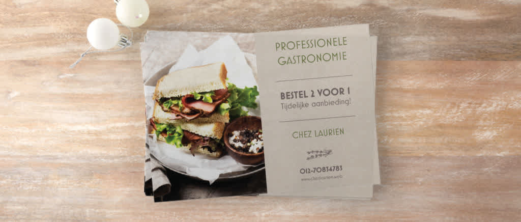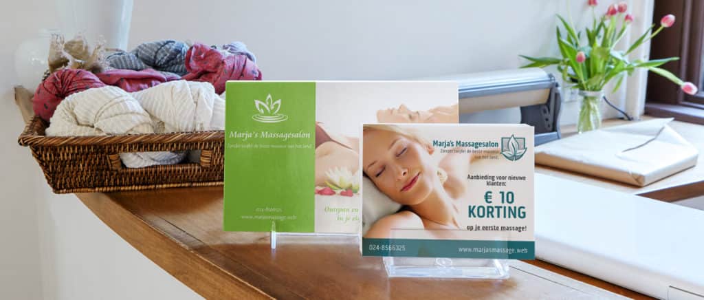 Een andere manier om coupons en postkaarten te combineren, is door kaarten te maken waarop je een korting voor nieuwe klanten promoot. Dat is een prima manier om mensen over te halen naar je winkel te komen en hopelijk blijven ze daarna terugkomen.