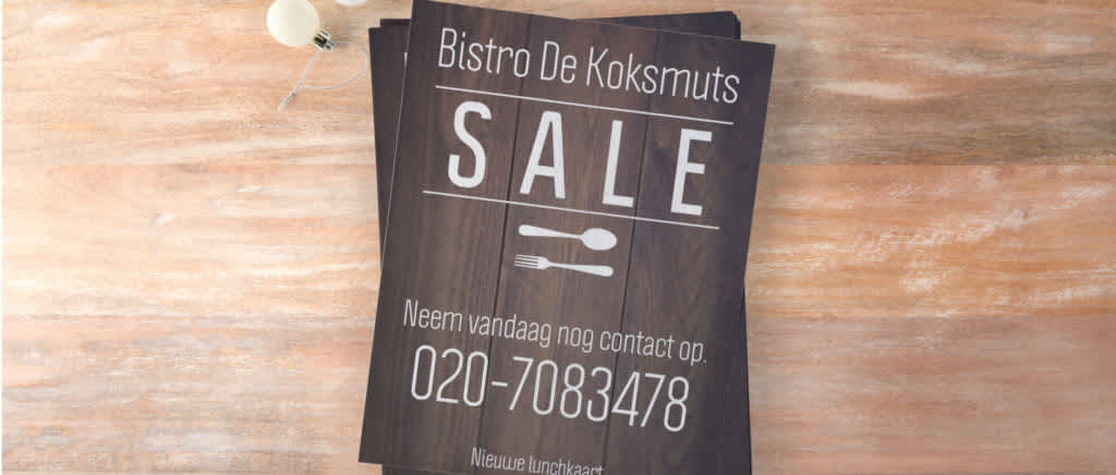 Sales helpen om meer mensen in je winkel te krijgen en ruimte te maken voor de nieuwe collectie. Laat het weten met een postkaart, waarop je genoeg ruimte hebt om alle informatie te printen die je klanten nodig hebben.