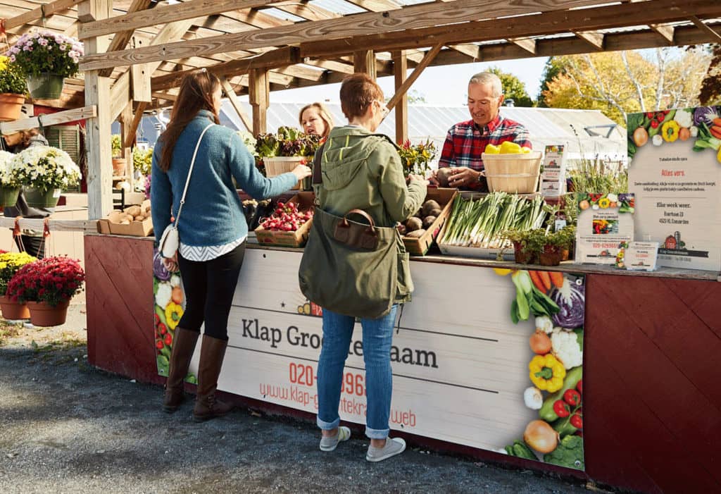 Als je het groter wilt aanpakken, zijn posters en spandoeken een duurzame, opvallende optie die van ver te zien is. Plaats ze buiten voor de deur van je winkel om nieuwe klanten aan te trekken en hang ze strategisch op in je winkel om klanten te begeleiden en te informeren. Gebruik opvallende teksten en heldere afbeeldingen om zoveel mogelijk aandacht te trekken.
