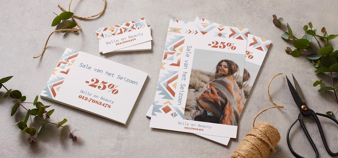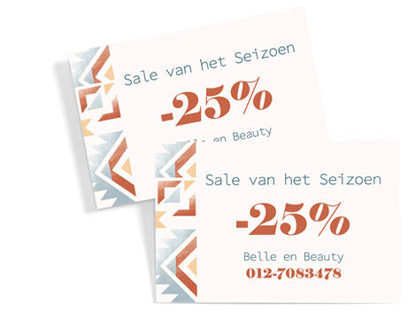 Laat je visitekaartjes dubbel werk verrichten: zet op een van de kanten een aanbieding of een stempelkaartontwerp om voor prijzen te sparen.