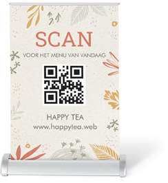Een van de populairste manieren die voor de comeback van QR-codes heeft gezorgd, is via contactloze menukaarten. Als je het nog niet gedaan hebt, stel er dan een in voor je eetgelegenheid en plaats de codes op een prominente locatie waar ze makkelijk gescand kunnen worden. Dat kan een mini roll-up banner zijn, een raamsticker op de voordeur of een spandoek bij de afhaalbalie.