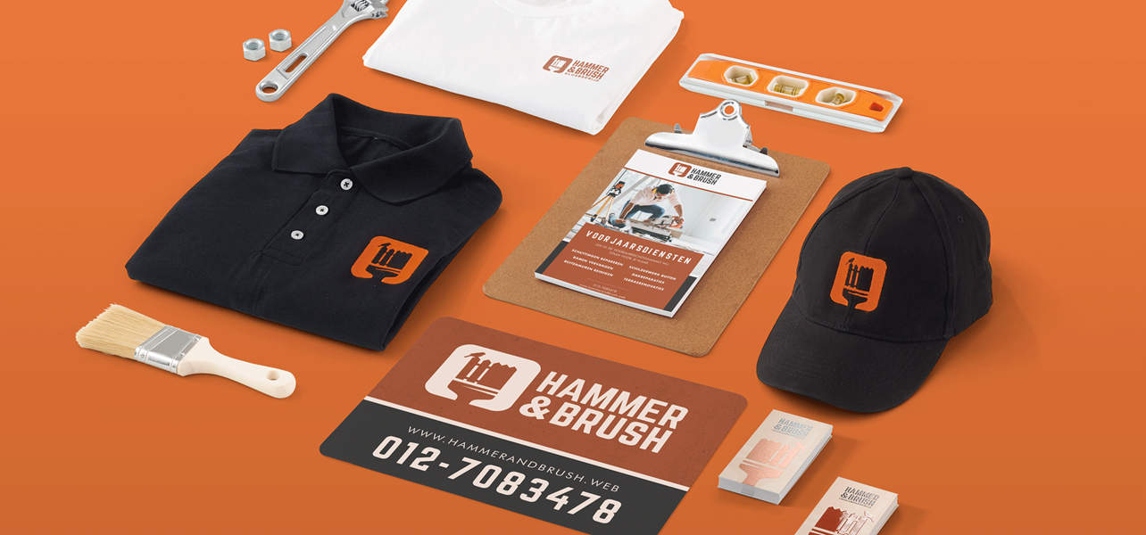 Een logo is de sleutel tot succes voor elke ondernemer. Het moet herkenbaar zijn en het liefst vanaf een afstand (of in een oogwenk) indruk maken. Als je al een logo hebt, kun je overwegen daar een simpelere, uitvergrote versie van te maken die je kunt gebruiken op je marketingmateriaal voor onderweg. Bijvoorbeeld zoals Hammer & Brush hier heeft gedaan met hun poloshirts en petjes. Deze artikelen met logo maken van je medewerkers en klanten in een klap wandelende reclameborden.