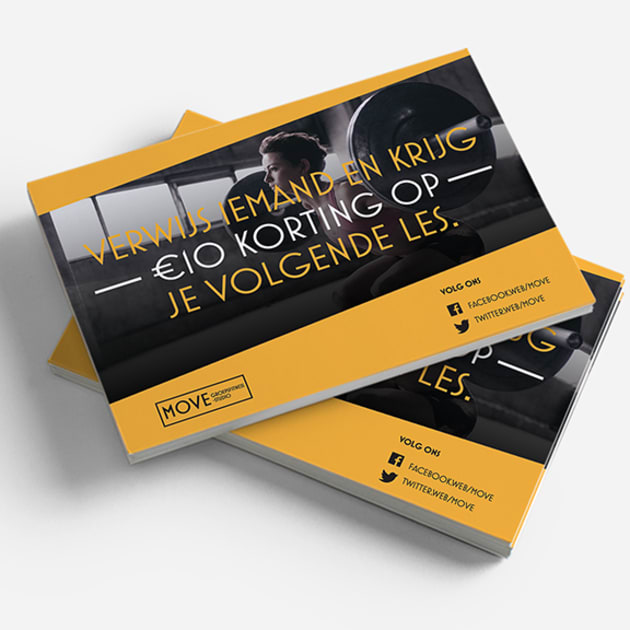 Geef bezoekers met wie je in gesprek raakt na afloop een postkaart om mee te nemen. Zet er je logo, je social handles en andere belangrijke informatie op. Het liefst ook een speciale aanbieding of kortingscode, zodat ze de postkaart bewaren. Blijf ook na het evenement top of mind met een postkaart of e-mail. Stuur er een naar iedereen die zichzelf op je mailinglist heeft gezet. Ga net een stapje verder en voeg een persoonlijk bericht toe als je met iemand over iets specifieks hebt gepraat.