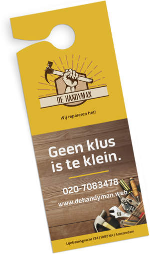 - Traditionele marketingmaterialen: Brochures, Visitekaartjes, Deurhangers, Magneten, Stickers