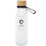 Blijf onderweg gehydrateerd met deze bedrukte glazen waterfles. Voorzien van een bamboe deksel en een siliconen draagriem.