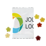 Vrolijk iemands dag op met de zoete verrassing van deze stervormige winegums - een klassieke traktatie die zeker in de smaak zal vallen. Als attent bedankje, als weggevertje voor een evenement of gewoon om wat vreugde te verspreiden: deze fruitige, stervormige winegums in hun glanzende, witte foliezakje zijn precies goed. Het artikel is eenvoudig aan te passen - voeg je logo, boodschap of info toe met behulp van onze intuïtieve studio. Hulp nodig? Onze designexperts zijn er om je te helpen je ideeën tot leven te brengen.