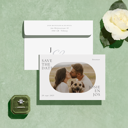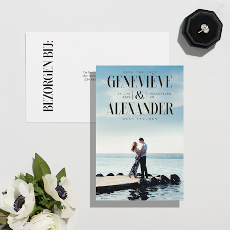 Kondig je grote dag aan bij familie en vrienden met gepersonaliseerde save-the-date kaarten.