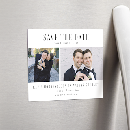 Duik in onze galerij waar je een grote verscheidenheid aan stijlen kunt bekijken: modern, bohemien, elegant, rustiek, retro en nog veel meer. Met sjablonen voor save-the-dates met foto kun je heel gemakkelijk kiekjes van jezelf en je geliefde bij je eigen tekst plaatsen. Voor een handig, interactief accent kun je zelfs een QR-code opnemen met een link naar de website van je bruiloft. Als je klaar bent, kies je een van onze hoogwaardige papiersoorten en plaats je je bestelling. Daarna zorgen wij voor de rest. Je ontvangt gepersonaliseerde save-the-date kaarten voor je bruiloft, helemaal volgens jouw wensen gedrukt en klaar om te versturen.