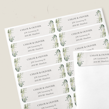 Als je set eenmaal compleet is, kun je kiezen uit een assortiment hoogwaardige papiersoorten, variërend van mat tot glossy, linnen en nog veel meer. Voor je grote dag is alleen het beste goed genoeg, dus we kiezen premium materialen en papiersoorten voor een mooie look-and-feel. Al die uitnodigingen moet je natuurlijk ook versturen. Daar hebben we handige extraatjes zoals adresstickers en stempels voor, waarmee je je uitnodigingen gemakkelijk kunt adresseren en verzenden.