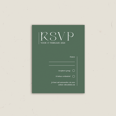 Een klassiek pakket drukwerk voor een bruiloft bevat een save-the-date-kaart, een trouwkaart en een antwoord- of inlegkaart. Als je gasten de optie wilt geven om digitaal te laten weten of ze komen, plaats dan een QR-code op je uitnodiging die rechtstreeks linkt naar de website van je bruiloft.