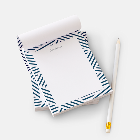 VistaPrint helpt je graag met het maken van een bij elkaar passende set schrijfwaar voor je bedrijf. Je kunt eenvoudig een ontwerp (een monogram, een logo of zelfs een patroon) gebruiken voor bij elkaar passende notitiekaarten, gepersonaliseerd briefpapier en nog veel meer.