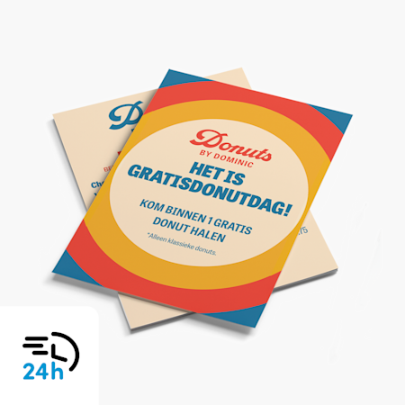 Als je je drukwerk dringend nodig hebt, zit je goed met lastminute bezorging van VistaPrint. Bij ons lastminute drukwerk wordt je bestelling binnen 24 uur gedrukt, verpakt en verzonden, ideaal voor urgente projecten, lastminute evenementen of krappe deadlines. Van lastminute visitekaartjes tot lastminute flyers: je ontvangt scherpe, full colour resultaten zonder concessies te doen aan snelheid of kwaliteit. Ons team voor lastminute drukwerk werkt de klok rond. Dus als je voor de vermelde uiterste besteltijd een in aanmerking komende bestelling plaatst, worden je producten de volgende werkdag bezorgd.