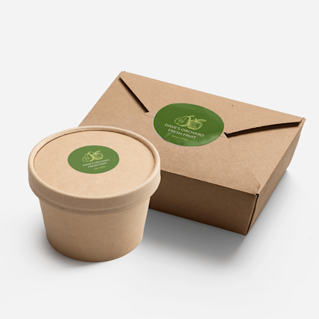 Wil je wat extra kleur of branding toevoegen aan de effen verpakkingsdozen? Bekijk dan de verpakkingsaccessoires van VistaPrint, zoals stickers op rol, etiketten voor voedselverpakkingen en zelfklevende verpakkingstape. Gebruik ze om je voedselverpakkingen mee dicht te maken, om productinformatie te delen of om je logo of bedrijfsnaam op de verpakkingen te zetten. Zorg ervoor dat klanten weten waar ze moeten zijn om lekker te eten. En als je ergens hulp bij nodig hebt, dan staan we voor je klaar.
