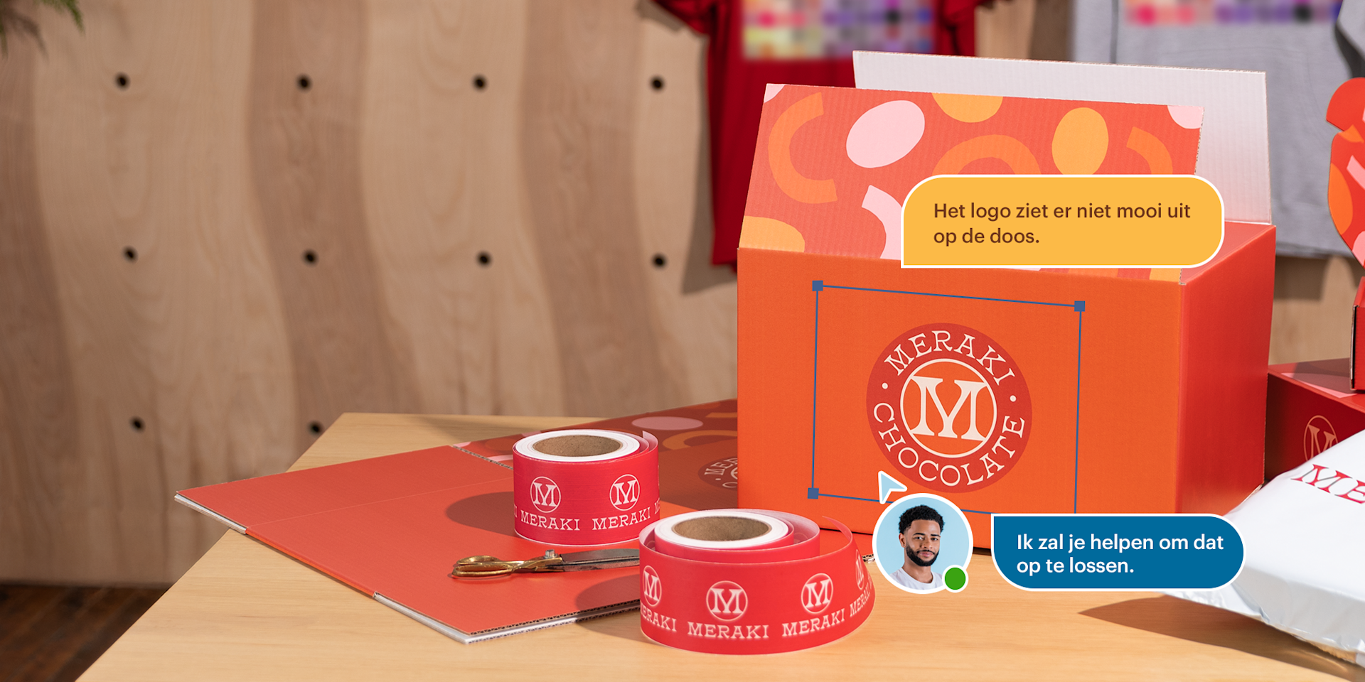 Je maakt de ervaring helemaal af met verpakkingstape of stickers met je merk erop, wat ook een goede manier is om onbedrukte verpakkingen een kleurig accent te geven. En als je hulp nodig hebt met het ontwerp, de bestelhoeveelheid of iets anders, dan staat onze klantenservice altijd voor je klaar.