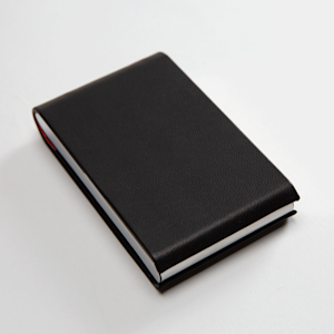 Bewaar maximaal 25 visitekaartjes in een houder van leer en metaal met ronde hoeken. Ā Details bekijken